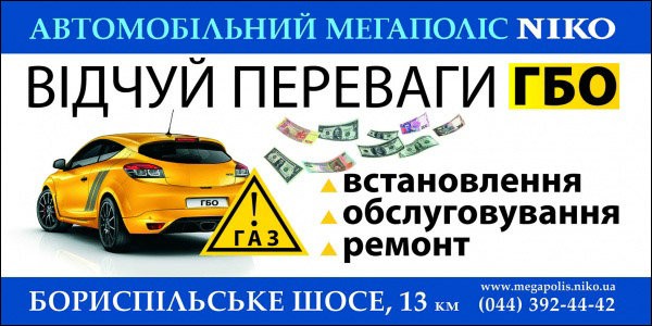 «Автомобильный Мегаполис НИКО» на Бориспольском шоссе, который представляет бренды Citroёn, Renault, Ford, Mitsubishi, Mazda и Suzuki, помогает своим клиентам найти альтернативу дорогому бензину. Теперь на СТО Мегаполиса на автомобили любых марок можно установить газобалонное оборудование и забыть о ценах на заправках. Газобалонное оборудование устанавливается на автомобили с бензиновым двигателем и на него распространяется гарантия сроком на 1 год. Стартовая цена установки – 12 900 грн. Финальная стоимость установки газобаллонного оборудования зависит от объема двигателя авто, размера устанавливаемого газового баллона, а также производителя оборудования