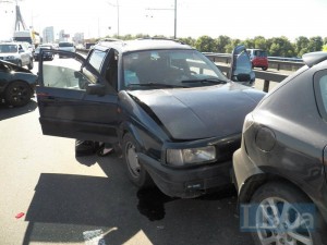 В субботу, 7 июня в Киеве на Московском мосту в направлении проспекта Ватутина милиционер за рулем BMW протаранил две машины, сообщает .