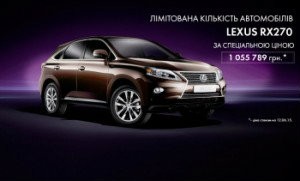 З 12 червня 2015 року в «Лексус Київ Захід» діє спеціальна пропозиція на лімітований склад автомобілів Lexus RX 270. Лише зараз Lexus RX 270 за привабливою ціною — 1 055 789 грн..