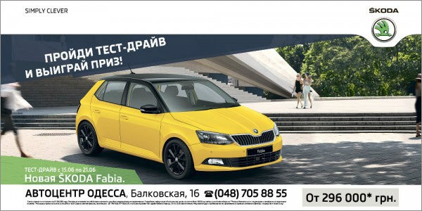 Официальный дилер автомобилей SKODA в Одессе ДП "АВТОЦЕНТР ОДЕССА" предоставляет возможность по-настоящему прочувствовать все характеристики новой SKODA Fabia, лично опробовать автомобиль в реальных дорожных условиях и утвердиться в неповторимости нового хетчбэка от SKODA.