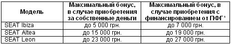 Бонусы от SEAT, опомнитесь! Разве можно получить бонус до 27 000 грн. при покупке дизельного SEAT Leon? Да, это возможно! А другие модели скажете Вы? Конечно, посмотрите полный список, ведь каждый покупатель SEAT, независимо от способа приобретения, получит бонус этой осенью.