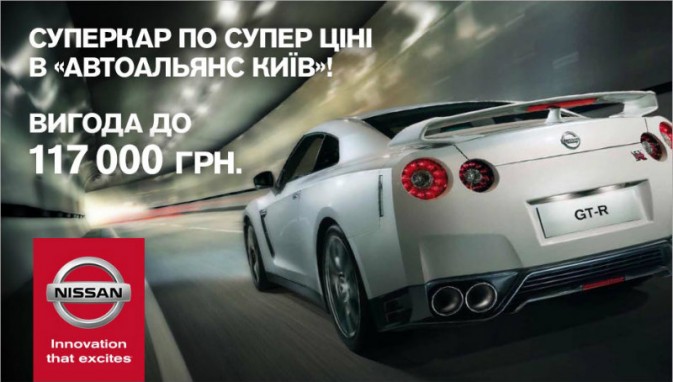 Официальный дилер Nissan в Киеве и Киевской области «АвтоАльянс Киев» предлагает специальный бонус на покупку Nissan GT-R (2013-го года выпуска) до 117 000 гривен!*.