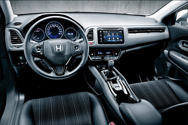 Салон HR-V предлагает пассажирам повышенный комфорт, а благодаря концепции кресел Magic Seat, возможно увеличить внутренне пространство для любых целей. Внутри автомобиль отделан пластиком с хромированными вставками и черными матовыми акцентами. Honda уверяет, что новинка получила одну из самых вместительных и универсальных кабин в своем классе. Багажное отделение объемом 688 литров благодаря складным сиденьям может быть расширено до 1665 литров.