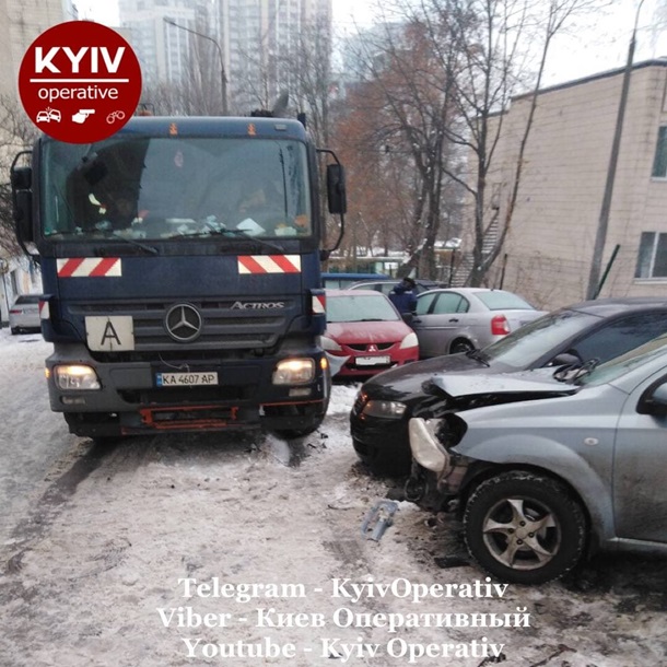 "На улице Лукьяновской 81, сегодня утром мусоровоз протаранил около 10 автомобилей. Как говорит водитель, он поднимался вверх по горке, было скользко и машину занесло", - говорится в сообщении.