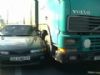 На съезде с Московского моста на Московский проспект, по направлению к Троещине, в крайней правой полосе фура Volvo прижала легковушку Mitsubishi Galant.