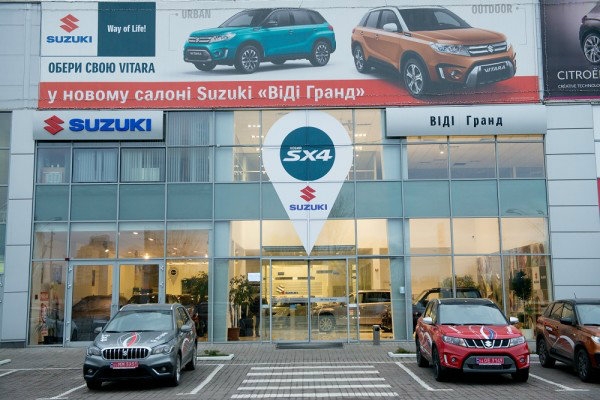 Официальный дилер Suzuki «ВиДи Гранд» — один из крупнейших в г. Киеве и Киевском регионе концептуальный 3-S комплекс в составе Города Автомобилей «ВиДи АвтоСити Кольцевая», предоставляющий полный комплекс основных и сопутствующих услуг в одном месте: продажу новых автомобилей, включая тест-драйв, кредит, страхование, возможность покупки авто по системе trade-in, премиальное сервисное обслуживание, возможность приобретения оригинальних запчастей и аксессуаров, программу помощи в дороге «Suzuki Assistance», единую Программу Лояльности «ВиДи АвтоСити».