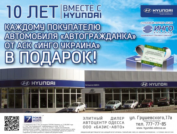 ** Предложение действительно с 1.12.2012 по 31.12.2012 года, для автомобилей Hyundai, приобретенных за наличный расчет.