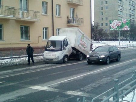К счастью, скорость машины была небольшая и автомобиль не был загружен, поэтому он просто остановился. Такого еще не видел ни водитель, ни очевидцы происшествия.