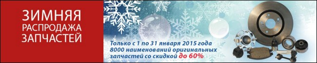 Прайд Авто центр объявляет о начале зимней распродажи оригинальных запчастей на автомобили, которая будет действовать до 31 января 2015 года. Специальные цены* со скидкой до 60% распространяются на более чем 8000 наименований оригинальных запчастей Honda всех групп и категорий!