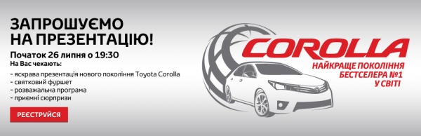 Тойота Центр Киев «ВиДи Автострада» приглашает Вас присоединиться к исключительному событию – торжественной встрече нового, уже 11-го по счету, поколения Toyota Corolla!.