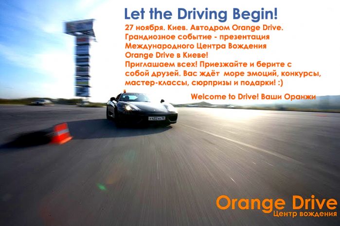 27 ноября 2010 года! Грандиозная презентация Международного Центра Вождения Orange Drive в Киеве! Let the Driving Begin!.