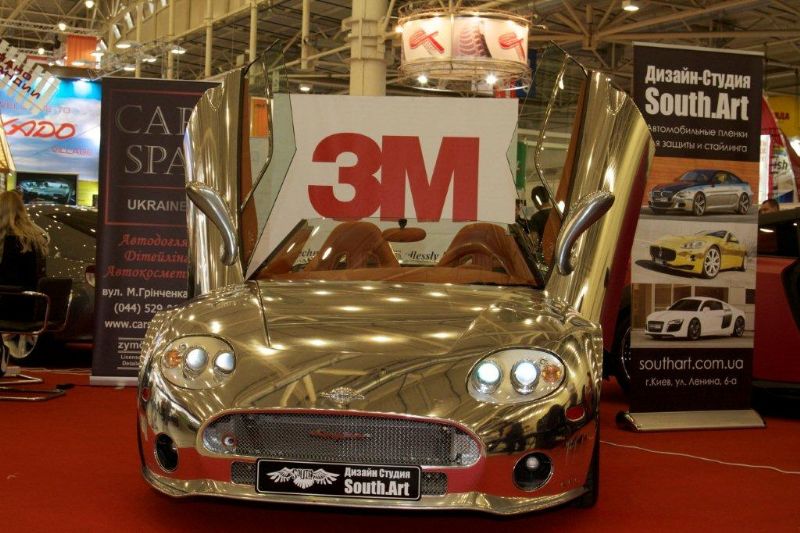 На двух стендах компании и партнеров находились шесть автомобилей, декорированных и защищенных продуктами 3М. Одним из них был впервые представленный на SIA голландский суперкар Spyker, обклеенный пленкой под хром 3M Scotchcal™ 7755-420.