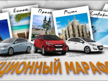 Старт дан! Каждый Клиент который приобретет автомобиль из модельного ряда HYUNDAI с 07 декабря 2013 года по 31 января 2014 года, в автосалоне компании «ПАРИТЕТ» на Автозаводской 24, сможет воспользоваться рядом привлекательных акционных предложений и на финише марафона стать участником розыгрыша туристического путешествия*. Победителя ждут: Прага или Париж, Милан или Рим, горнолыжные курорты Словакии или Польши, солнечные пляжи Египта.