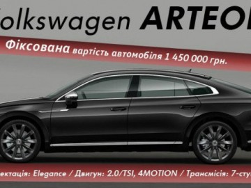 Акція на Volkswagen ARTEON! Фіксована вартість автомобіля в гривні, з урахуванням витрат на реєстрацію.