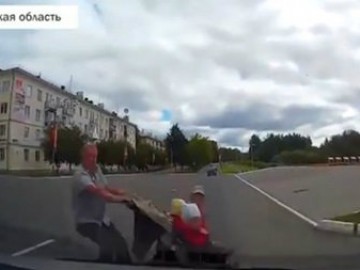 От удара детей и коляску разбросало по тротуару, малыши улетели на несколько метров. Жуткий инцидент снял видеорегистратор.