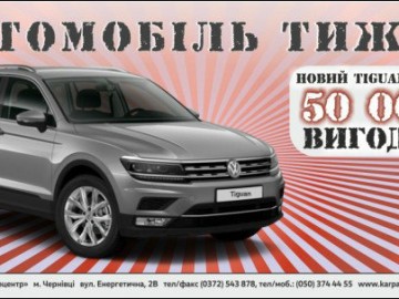 В рамках проекту «Автомобіль тижня» автосалону «КарпатиАвтоцентр» у Вас є унікальна можливість придбати Volkswagen Tiguan із вигодою понад 50 000 грн.