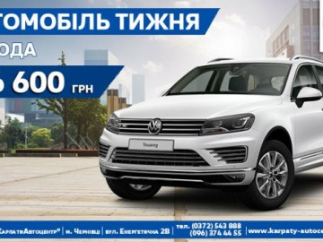 Вигідні умови кредиту чи лізингу, які діють в автосалоні «КарпатиАвтоцентр» допоможуть Вам стати власником автомобіля тижня – Volkswagen Touareg.