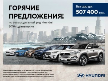 Обратившись в салоны официальных дилеров в период с 14 по 31 января 2017 года, украинские покупатели автомобилей Hyundai смогут приобрести понравившуюся им модель с максимальной выгодой до 507 400 гривен.