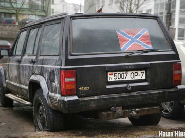Беларусь: в Минске джипу с флагом "новороссии" пробили колеса. (Фото)
