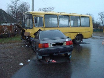Черкасская область: автобус протаранил легковушку Audi. (Фото)