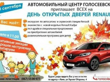 Приглашаем Вас посетить Автомобильный центр Голосеевский, чтобы познакомиться с новой модели Renault Kadjar, а также пройти тест драйв и получить оригинальный подарок. .