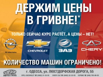 Держим цены в гривне на Opel, Chevrolet, ZAZ, Chery!