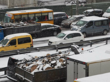 Но несмотря на все усилия коммунальщиков, город встал в глобальной 9-балльной пробке. Встали все мосты в направлении правого берега. На Владимирском спуске машины буксуют на месте, из-за чего образовалась огромная пробка в направлении в центр города с Подола. В Соломенском районе вполне ожидаемо произошли заторы в самых "узких" местах – на Караваевых дачах, возле метро "Шулявская", на Индустриальном мосту. В среднем, киевляне проводят в заторах по часу-полтора.