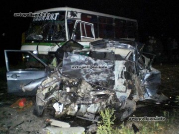 Днепропетровская область: ВАЗ уничтожился об автобус - погибли двое взрослых и ребенок. (Фото)