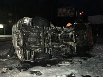 Донецк: сгорел автобус с боевиками - два человека погибли, 16 травмированы. (Фото)