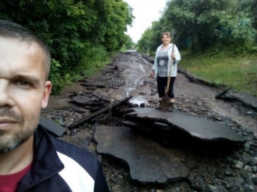 "Впервые в жизни столкнулся с таким аномальным явлением. Заехали в одно из сел на Тальнивщине - навестить родную бабушку. Дорога до самого дома лежала по асфальту, но после сильного двухчасового дождя, асфальта как и не было. Наступил апокалипсис: дороги нет, света нет, связи нет, телефоны разряжены, еще и суббота - выходной. Американское кино отдыхает", - комментирует в Facebook Владислав Москаленко.