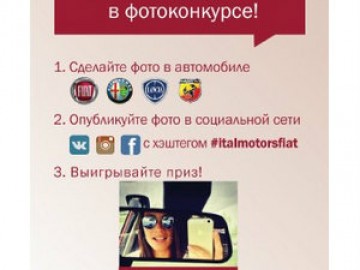 - публикуйте фото в соцсети (Facebook, Google+, ВКонтакте, Instagram) , поставив тэг ?#italmotorsfiat?;