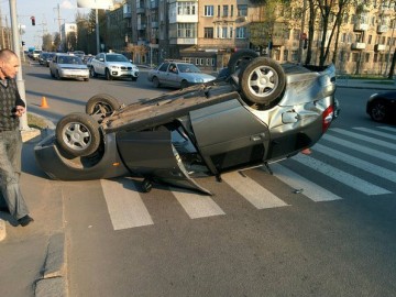Харьков: ВАЗ столкнулся с Daewoo Lanos и опрокинулся - пострадал ребенок и женщина. (Фото)