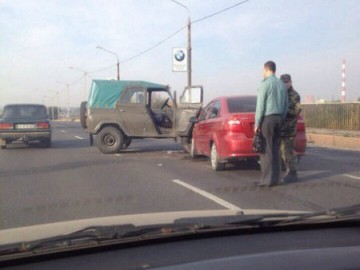 Харьков: столкнулись военный УАЗ и Сhevrolet. (Фото)
