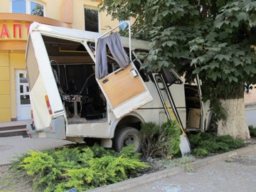 Маршрутное такси № 6, которое двигалось по улице Шевченко к Дому культуры, внезапно съехало с дороги и врезалось в дерево.
