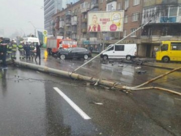 В Киеве на проспекте Победы авто марки BMW, двигаясь в направлении центра, сбило троллейбусную опору, сообщает Еспресо TV.