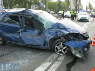 В понедельник, 19 октября днём в Киеве на проспекте Ватутина автомобиль Chevrolet, двигаясь в направлении Керченской площади, на полном ходу протаранил в заднюю часть троллейбус с пассажирами, сообщает .