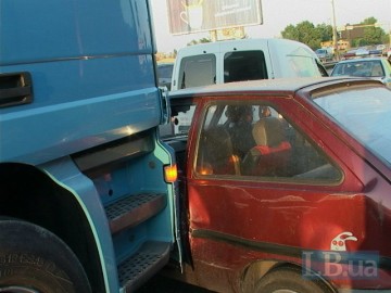 Киев: грузовик развернул "Таврию" поперек дороги. (Фото)
