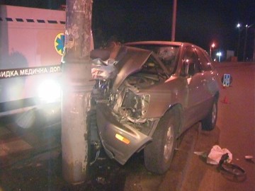 Киев: Lexus RX на скорости протаранил столб. Водитель выломал руль и выбил стекло. Двое пострадавших. (Фото+Видео)