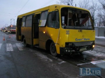 В воскресенье, 30 ноября в Киеве, на улице Привокзальной маршрутный автобус "Богдан" с пассажирами жестко протаранил внедорожник, сообщает .