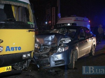 Киев: маршрутка столкнулась легковым Chevrolet. Есть пострадавшие. (Фото)