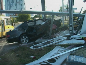 В пятницу, 31 июля около пяти утра в Киеве на проспекте Воссоединения автомобиль Mercedes протаранил осветительную опору на АЗС, сообщает .