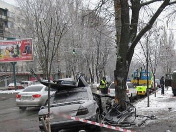 Киев: Mercedes влетел в опору - погибли два пассажира. (Фото)