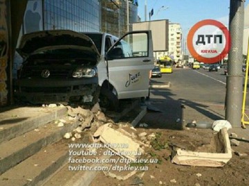 "ДТП прямо сейчас в Киеве на площади Победы. Водитель микроавтобуса "Фольксваген" залетел на ступеньки казино в здании гостиницы "Лыбидь", - говорится в сообщении.