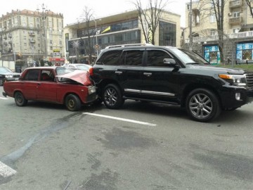 На днях, в центре Киева на Крещатике после столкновения ВАЗа и Toyota Land Cruiser владельцы "Жигулей", взяв все ценное из автомобиля, просто сбежали, сообщает .