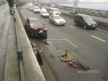Киев: на Набережно-Крещатицкой Hyundai Santa Fe врезался в трактор. (Фото)
