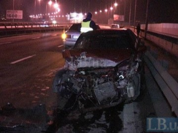 В понедельник вечером в Киеве на Южном мосту Honda Civic, двигаясь в направлении левого берега, по неизвестным причинам, врезалась в разделительный отбойник, сообщает .