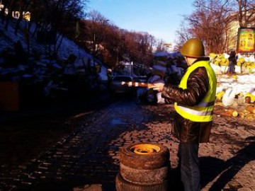 Киев: на баррикадах родственник офицера внутренних войск регулирует движение ножкой от стула