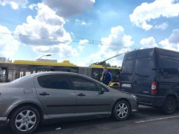 Отмечается, что два автомобиля, попавшие в ДТП, перевозили овощи. От удара капуста выпала из кузова и разлетелась по проезжей части, усложнив объезд. Со стороны Троещины от моста образовался большой затор.