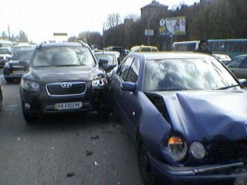 Киев: на проспекте Победы столкнулись пять авто. Виновник аварии с места ДТП скрылся. (Фото)
