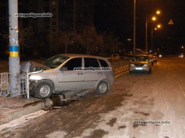 Киев: на улице Цветаевой ВАЗ врезался в столб. (Фото)